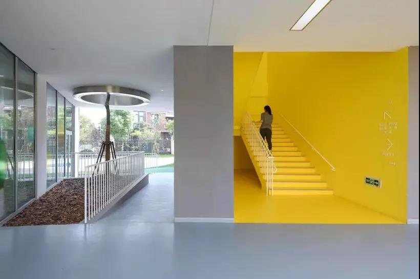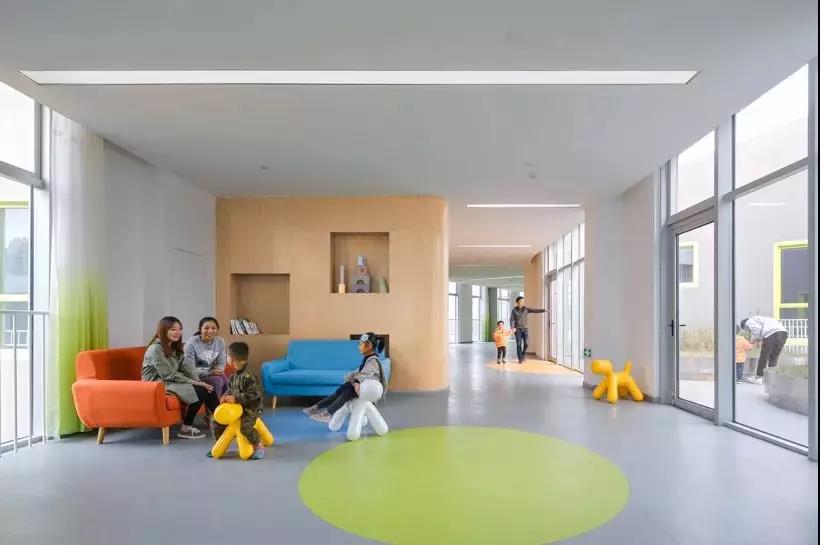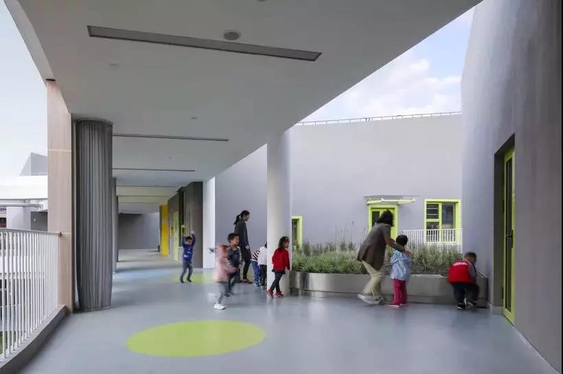 該團隊有意擴大了圓形走廊,并將其與室外空間融為一體,使其成為兒童外出,聚集和玩耍的空間。