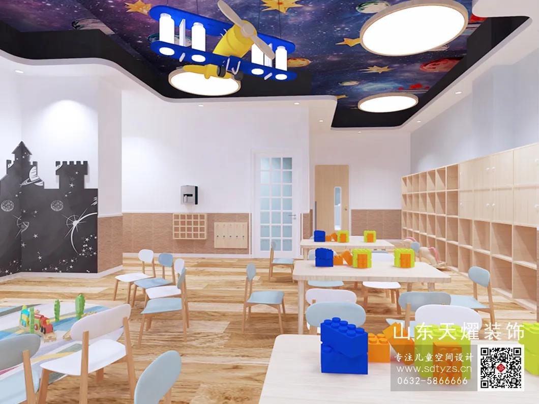 在這套案例中,濃郁神秘的色彩基調沖破北歐派的孤寂和冷清,還以深刻、充滿探究意味的裝飾風格。藍灰對比承托藝術的高雅氣質,在整片深海之中搖曳星光。原木色適當地補足環境中所需的溫馨感和親切之意,更能在園所的環境中生出溫柔的一面。