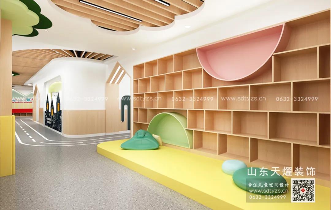 活動區空間結構和設計明亮又寬闊,墻壁抽象的植物軟包,不僅充滿藝術感。還給活動區增加很多了活力。
