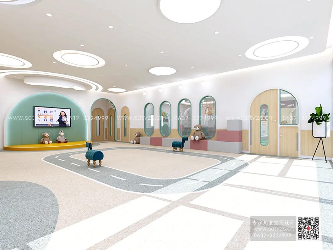 頂面造型更顯空間靈動,與墻面結合,層次豐富。動感咕咚教室可以成為孩子們自由玩耍的空間,集學習、休閑、運動、游戲、鍛煉多元功能為一體的空間。通過墻面觀察窗可以看到教室內活躍的小朋友,教室內沒有任何復雜的造型,保證空間的開闊,充分體現玩教具的功能。
